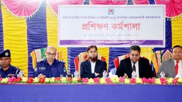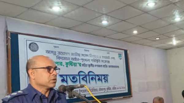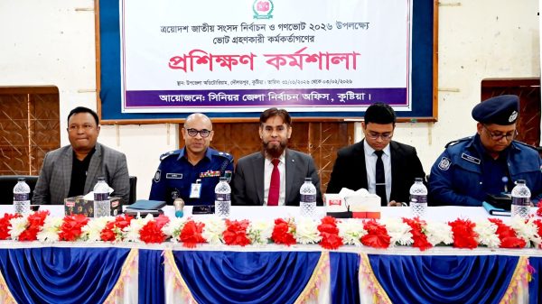 ইবিতে ই-জিপি বিষয়ক কর্মশালা অনুষ্ঠিত কুষ্টিয়া পুলিশ লাইন্স স্কুলে পুলিশ সুপারের মতবিনিময় সভা ঝিনাইদহে নির্বাচনকালীন সাংবাদিকতা বিষয়ক প্রশিক্ষণ কর্মশালার উদ্বোধন দৌলতপুরে নির্বাচনী প্রশিক্ষণ কর্মশালা অনুষ্ঠিত খোকসায় নির্বাচন বিষয়ক প্রশিক্ষণ কর্মশালা অনুষ্ঠিত দৌলতপুরে দুদকের মামলায় ভুয়া ইউএনও আটক মুফতি আমির হামজা নিরাপত্তা ঝুঁকিতে,থানায় জিডি নির্বাচনে অবৈধ অস্ত্রের ব্যবহার চলবে না-পুলিশ সুপার কুষ্টিয়া রাস্ট্র সংস্কার চাইলে হ্যাঁ ভোটের বিকল্প নেই -উপদেষ্টা শারমিন এস মুরশিদ ঝিনাইদহে অসহায় শীতার্তদের মাঝে কম্বল বিতরণ করলেন জেলা প্রশাসক আব্দুল্লাহ আল মাসউদ