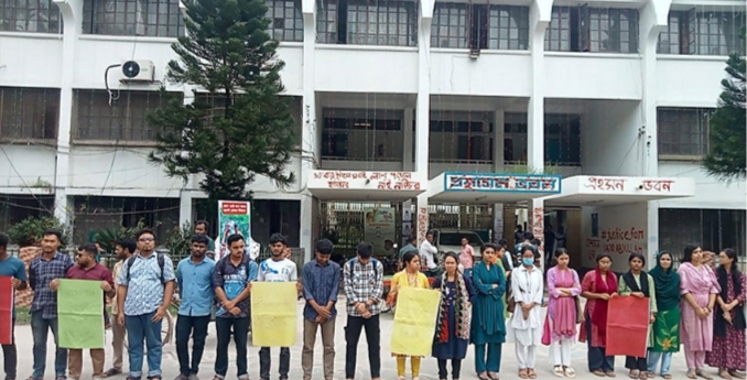 বুধবার (০৬ আগস্ট) দুপুরে অভিযুক্ত ওই শিক্ষার্থীর স্থায়ী বহিষ্কারের দাবিতে প্রশাসন ভবনের সামনে মানববন্ধন করেছে বিশ্ববিদ্যালয়ের হিন্দু ধর্মাবলম্বী শিক্ষার্থীরা। পরে মানববন্ধন শেষে তারা প্রক্টর বরাবর লিখিত অভিযোগ দেন। অভিযুক্তের বিরুদ্ধে দ্রুত ব্যবস্থা না নিলে কঠোর কর্মসূচির হুঁশিয়ারি দিয়েছেন তারা।