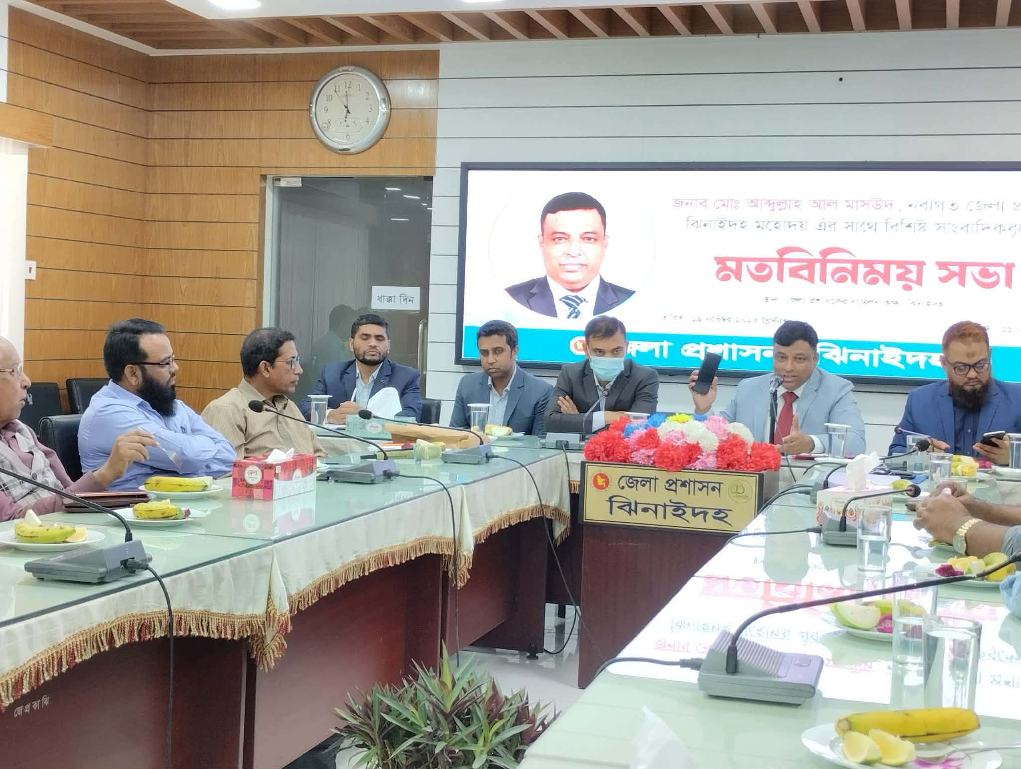 এম এ কবীর, ঝিনাইদহ :ঝিনাইদহে নবাগত জেলা প্রশাসকের সাথে বিভিন্ন প্রিন্ট ও ইলেকট্রনিক মিডিয়ায় কর্মরত সাংবাদিকদের এক মতবিনিময় সভা অনুষ্ঠিত হয়েছে। বুধবার (১৯ নভেম্বর) সকালে জেলা প্রশাসকের সম্মেলন কক্ষে অতিরিক্ত জেলা প্রশাসক সাইফুর রহমানের সভাপতিত্বে অনুষ্ঠিত সভায় প্রধান অতিথি ছিলেন জেলা প্রশাসক আব্দুল্লাহ আল মাসউদ। বিশেষ অতিথি ছিলেন জেলা পরিষদের প্রধান নির্বাহী কর্মকর্তা সেলিম রেজা পিএএ, স্থানীয় সরকার বিভাগের উপ-পরিচালক রথীন্দ্রনাথ রায়।, জেলা তথ্য অফিসার আব্দুর রউফ এর পরিচালনায় মত বিনিময় সভায় বক্তব্য রাখেন ঝিনাইদহ জেলা রিপোর্টার্স ইউনিটির সভাপতি এম এ কবীর, ঝিনাইদহ প্রেসক্লাবের সভাপতি আসিফ কাজল, জেলা প্রেস ক্লাবের সভাপতি মিজানুর রহমান, আলাউদ্দিন আজাদ, মাহমুদ হাসান টিপু, সাদ্দাম হোসেন প্রমুখ।