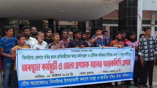 এম এ কবীর,ঝিনাইদহ:ঝিনাইদহে বধির ও শ্রবন প্রতিবন্ধীদের আত্ম কর্মসংস্থান ও মৌলিক অধিকার নিশ্চিতের দাবীতে স্মারকলিপি প্রদান করা হয়েছে। বুধবার (৮ অক্টোবর) সকালে ইশারাভাষী কল্যাণ সংস্থার পক্ষ থেকে ঝিনাইদহ জেলা প্রশাসকের